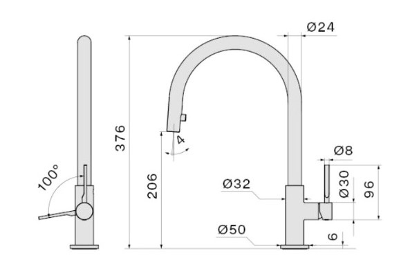 - Форма излива: С-образная.